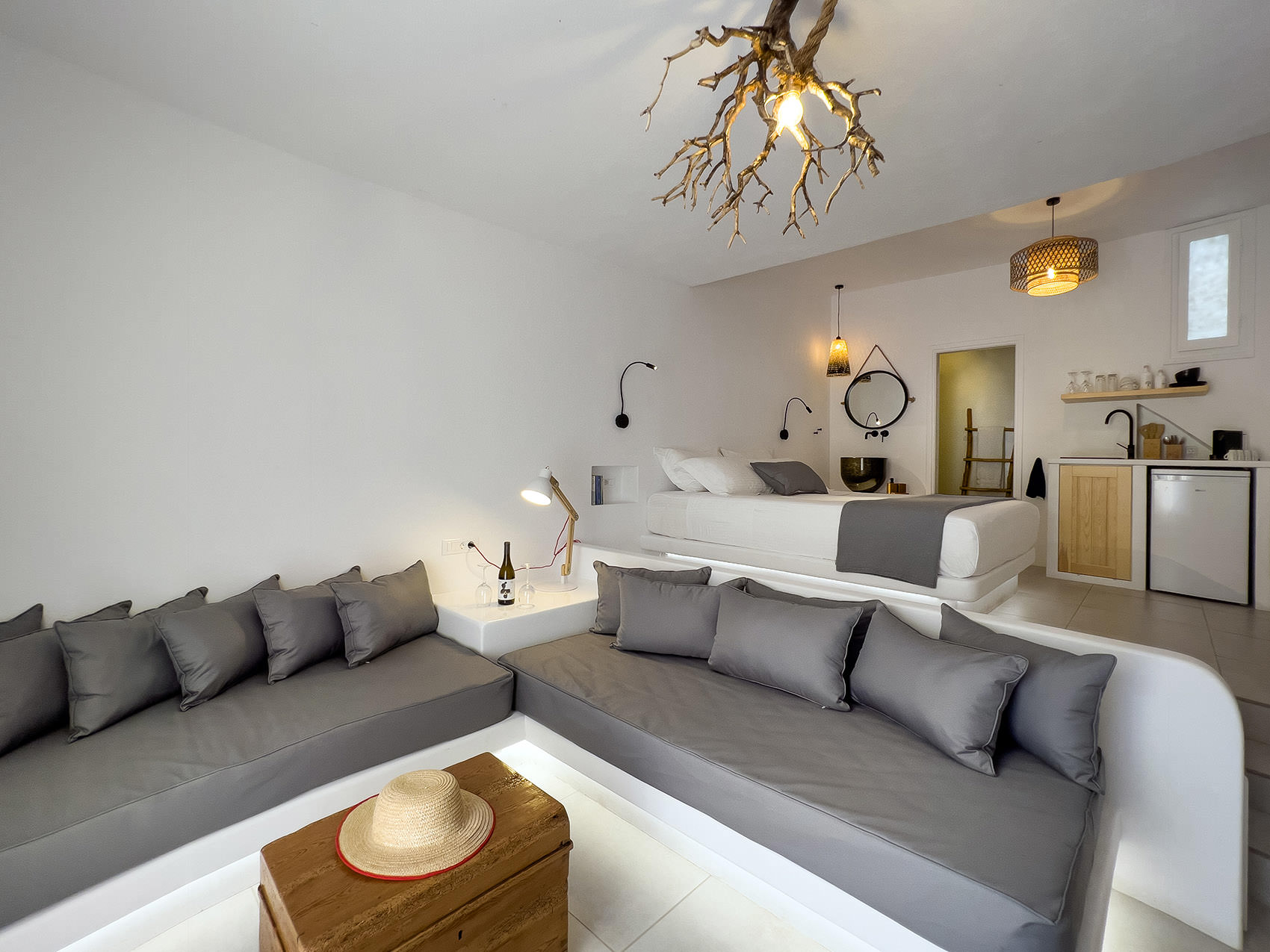 Διαθέτουν ενοικιαζόμενα στούντιος, δωμάτια και διαμερίσματα που χαρακτηρίζονται από την απλότητα και την κυκλαδίτικη ομορφιά του νησιού μας, που προσφέρουν πάνω από όλα ηρεμία και άνεση για μια ξεκούραστη διαμονή με νανούρισμα το κύμα της θάλασσας. Εμείς σας αγκαλιάζουμε με την φιλοξενία μας, εσείς απλά ακολουθήστε το ένστικτο σας!